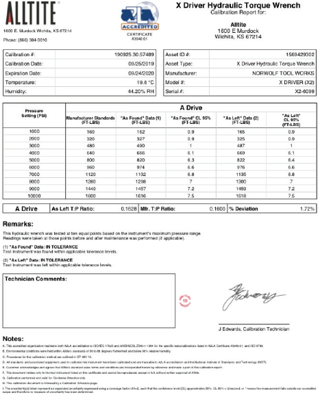 ALLTITE certificates have a traceability report for every instrument calibrated which can be accessed via our TORQUEWARE Software or our QR Coded Calibration Certificate labels
